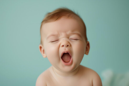 newborn baby napping during daytime nap at home. Panorama with copy space. Generative AI