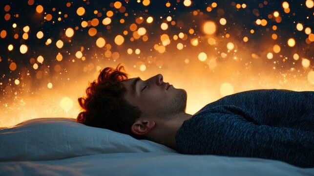 Illustration of a person sleeping peacefully under a starry sky.