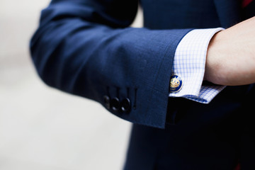 Young woman rolling up sleeve of her blouse