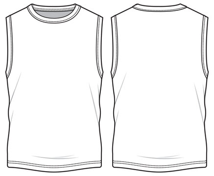 Men's sleeveless T Shirt vest design flat sketch fashion illustration drawing template mock up with front and back view. Tank top cad drawing template