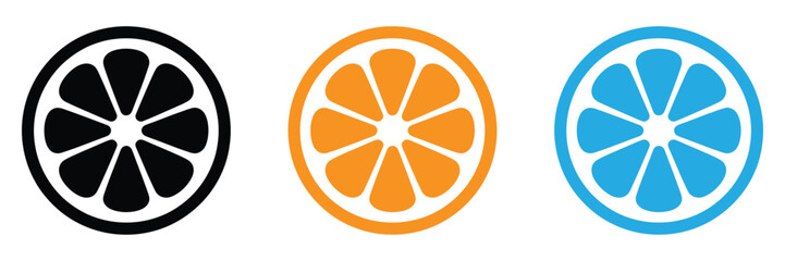 Orange slice shape set. Grapefruit black symbol collection. Mandarin elements.Vibrant citrus slices for summer promotions and healthy living