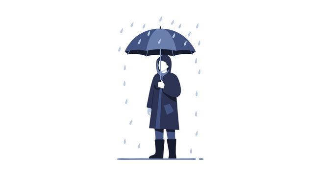 Isolated Figure Sheltered from Rain Showers Beneath an Umbrella in Minimalist Style Illustration