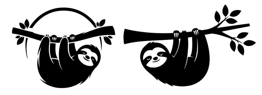 A charming set of cartoon sloths in lazy hanging poses, great for nature and relaxation-themed designs.