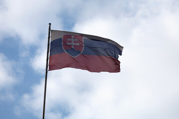 Slovakian flag waving in the wind, a symbol of national identity and patriotism