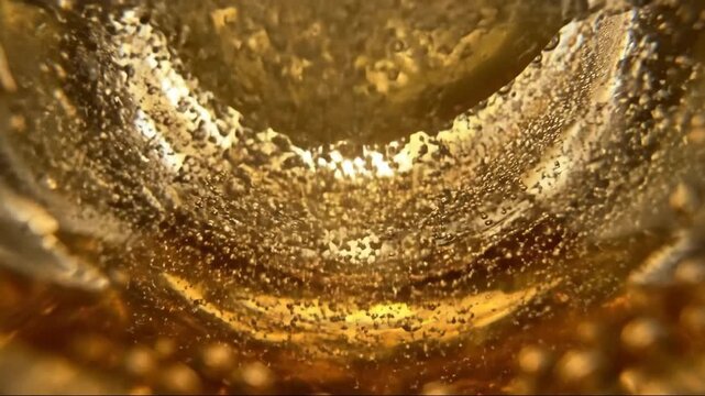 Closeup macro shot of rich brown liquid, likely coffee or tea with milk, being poured creating a dynamic splash, swirl, and droplets in motion, capturing the texture and movement of the beverage