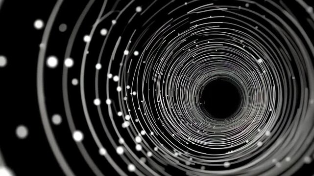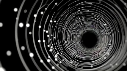 Infinite monochrome tunnel of circles moving slowly with futuristic style