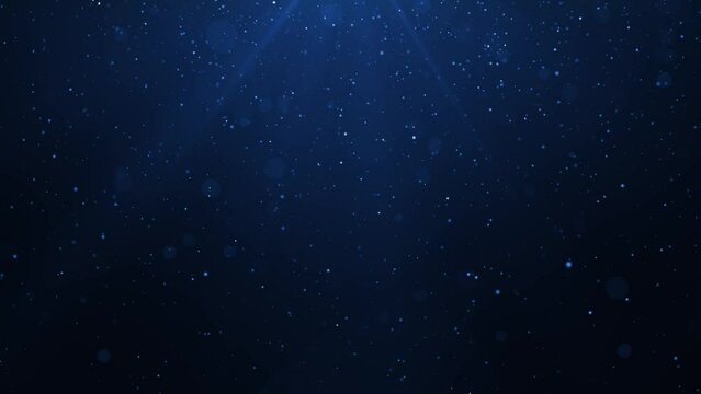abstract blue glitter particles falling slowly animation background, snow falling or underwater concept