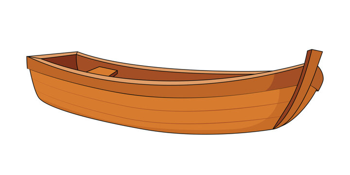 Isolated wooden boat illustration on white background. Vector Illustration.
