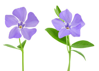 Vinca minor  (lesser periwinkle or dwarf periwinkle) in a glass vessel on a white background