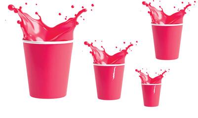 I see this new image—it shows **four red cups** with liquid splashing upward. They are arranged in different **sizes**, from largest on the left to smallest on the bottom right, almost like a scaling