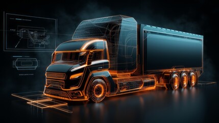 Futuristic truck and trailer on wireframe intersection: digital illustration of futuristic transport concept