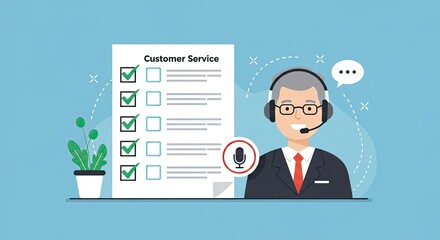 Professional customer service representative with headset and checklist, ready to assist and resolve inquiries efficiently, boosting client satisfaction.