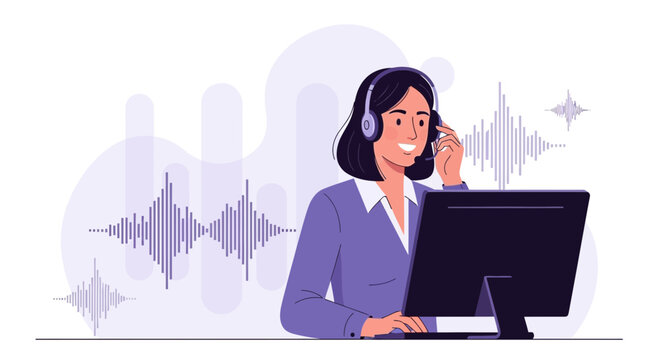 Smiling customer service agent with headset promoting efficiency