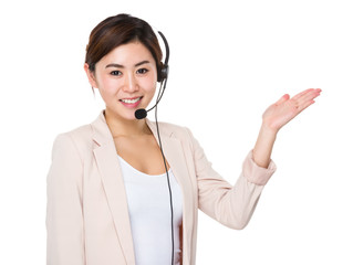 Customer services agent with open hand palm