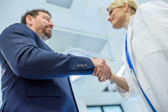 Smiling medical professionals in scrubs promoting trust in healthcare