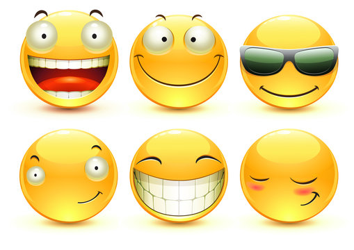 set of smiley faces, PNG, emoji collection, vector, graphic, digital, happy, sad, angry, surprised, laughing, winking, cute, fun, expressive, communication