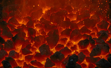 close up of embers in forge