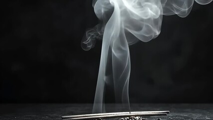 White smoke rises from incense sticks on a dark background