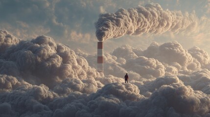 A factory smokestack spewing out dark clouds, representing the environmental impact of industry.