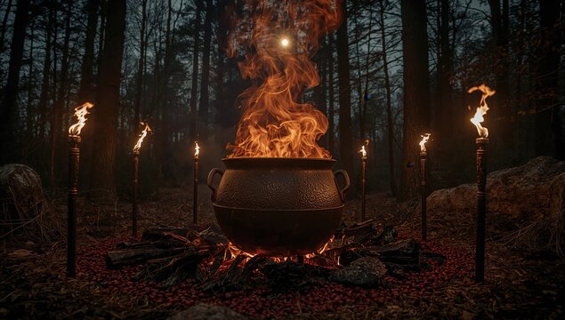Spooky halloween party invitation with bubbling cauldron