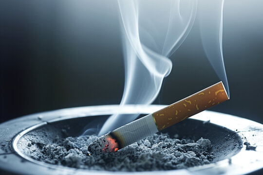 smoldering cigarette a close up of a smoldering cigarette with a delicate trail of ash and smoke symbolizing addiction and harmful habits