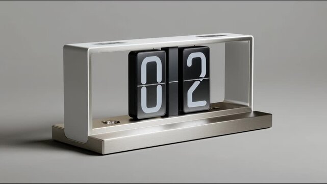 A modern flip clock sits on a table while the right digit smoothly changes from 0 to 1 and then to 2, with the device remaining completely still
