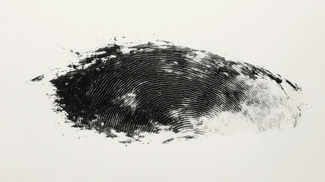 Black fingerprint smudge on white, forensic science, investigation background, identity