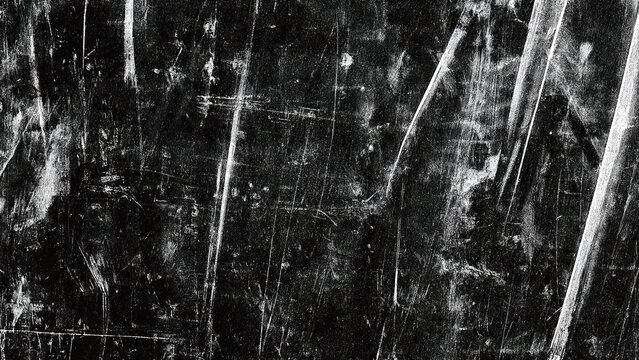 Black and white distressed overlay grunge texture background, rough vintage ink drawing with space for text or design. Abstract smudged dust effect on old paper surface. Black color backdrop.
