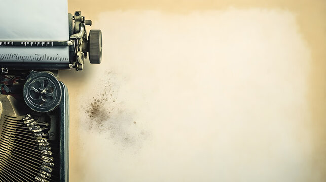 Distressed typewriter paper with curled edges and smudged ink stains evoking a nostalgic storytelling atmosphere