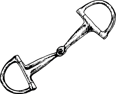 graphic vector illustration of snaffle D-Ring. Equipment for horse riding. Isolated. For cards, prints, decor