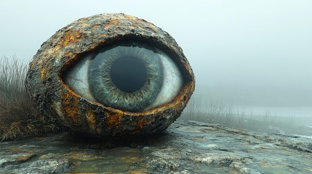 A large eye is carved out of a rock