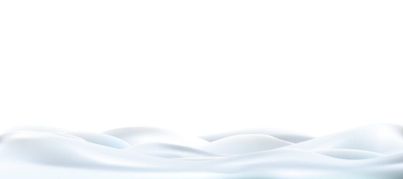 Snow landscape, snowdrifts and frozen hills decoration isolated on a transparent background, empty snowbanks caps field, pile, ice, snowball and snowdrift, snow texture - stock vector