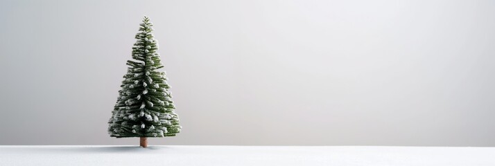 A snow-covered Christmas tree set against a blank white background, evoking feelings of serenity and holiday cheer in a minimalist arrangement.