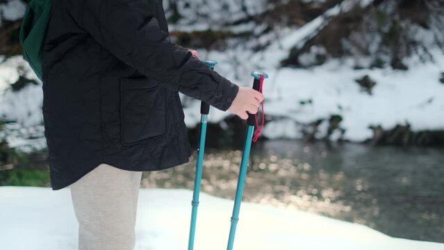 Ski adventure in snowy terrain hiker embracing hiking in winter wonderland, snow covered travel nature mountains calling people to sport cold trek in extreme landscape man active white forest