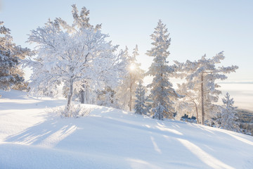 Winter forest landscape with snow covered trees
