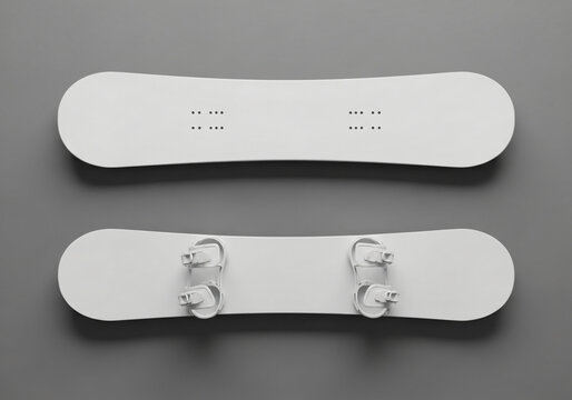 Two white snowboards on top and bottom, a mockup for your design. Clear realistic snow board mock up template for printing, 3d rendering , vertical top view on gray background
