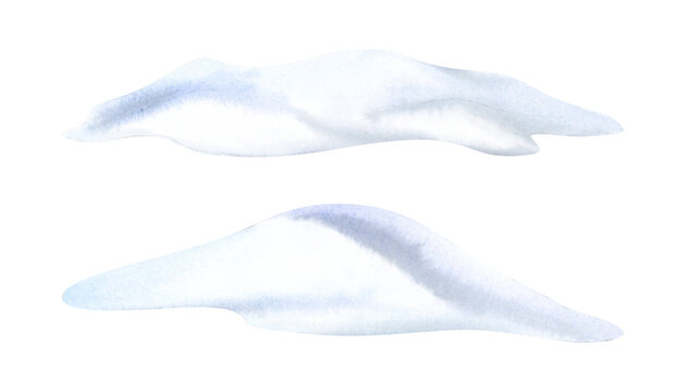 Watercolor snowdrifts illustration set isolated on white. Hand drawn snow hills elements for winter landscape designs and Christmas greetings. North wintertime outdoor nature