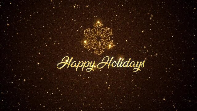 Christmas glowing background with abstract snowflake sparkling particles lights glitter decorated for copyspace text or digital card greeting message. beautiful bokeh holiday festival.