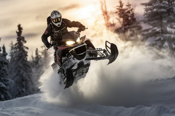 Adventurous snowmobiling through pristine winter landscape