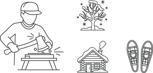 Winter sport woman hiking in snowshoes. Snowshoeing girl in the snow with shoe equipment for outdoor walking in forest trail. Quebec, Canada.