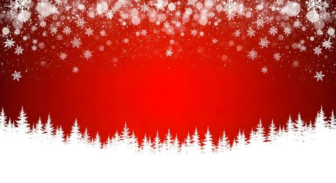 A serene red christmas background featuring a snowy forest and falling snowflakes, creating a peaceful and festive atmosphere for holiday designs