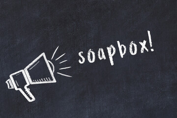 Close up of glossy black soapbox car with brown wooden wheels outdoors