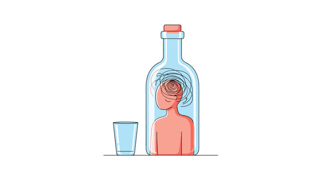 Person trapped in a bottle symbolizes the confinement of alcoholism.