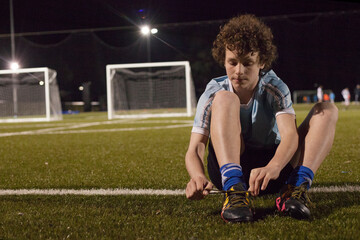 Young teen boy preparing to do evening soccer training