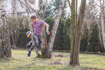 Football player balancing soccer ball with expert control