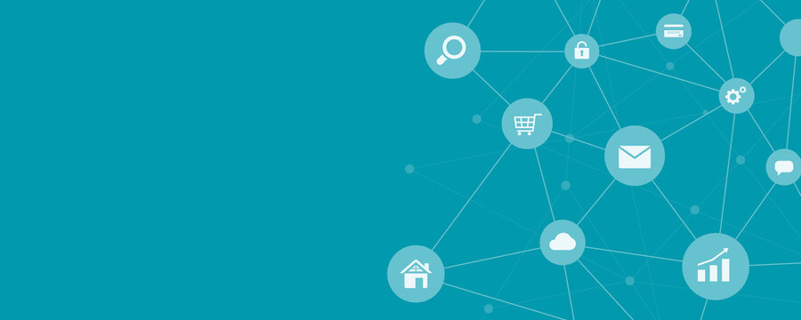 business online communication and abstract social network connection background concept. Social network Web banner concept. Flat vector illustration.
