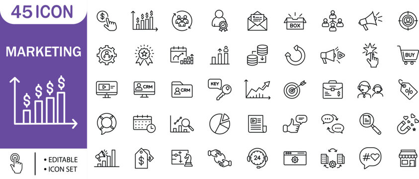 Marketing Strategy Analytics CRM SEO Growth Sales Editable Icon Set