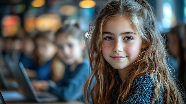 A teacher conducting a lesson on the importance of online kindness, with students creating positive social media posts on their laptops