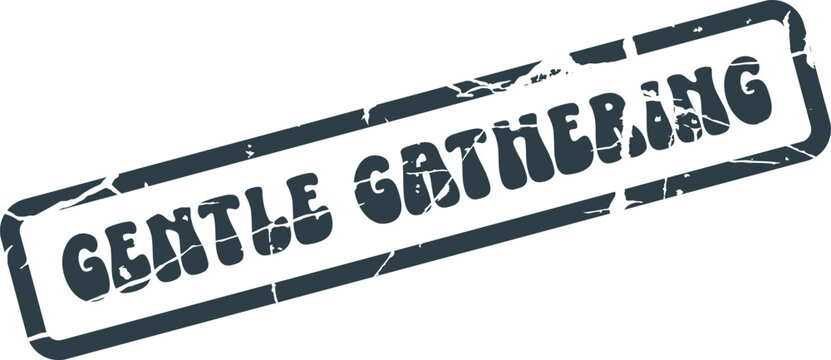 Distressed rubber stamp impression stating Gentle Gathering suitable for community events