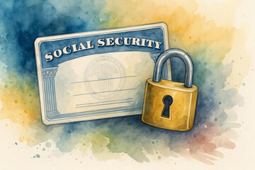 Social Security illustration in an advertising watercolor style - for ads, banners, and booklets,  empty space for text